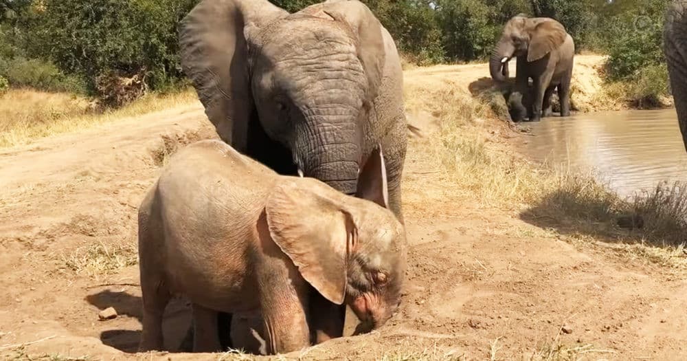 This resulted in Pisa playfully knocking down Khanyisa. However, the determined albino baby elephant eventually found her way to join Timisa.