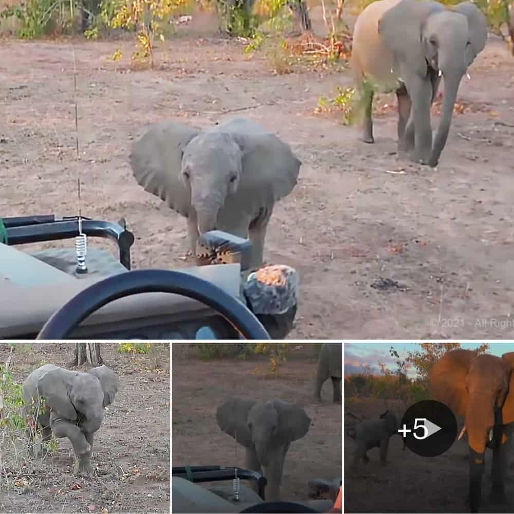 Playful Baby Elephant Shows Brave Streak in Front of Mother