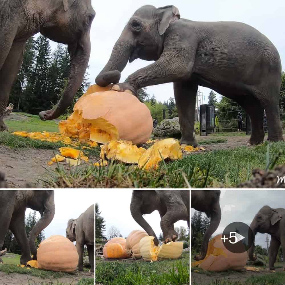 Watch Joyful Elephants Delightfully Crush Giant Pumpkins