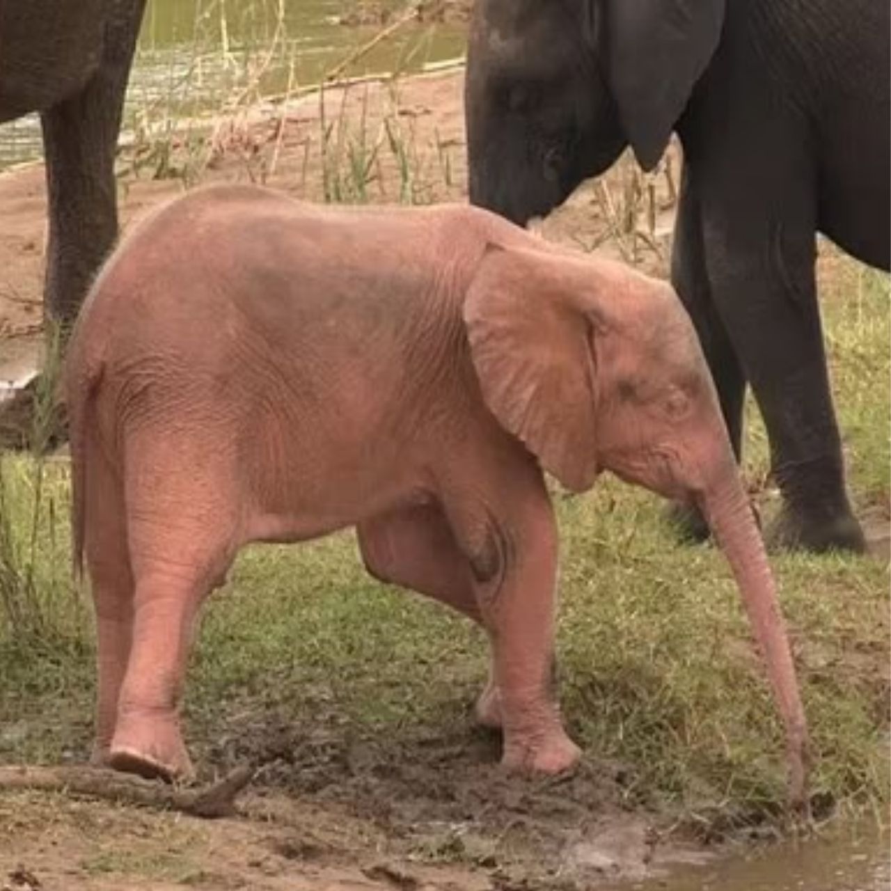 Rare Pink Elephant Joyfully Plays in Kruger National Park