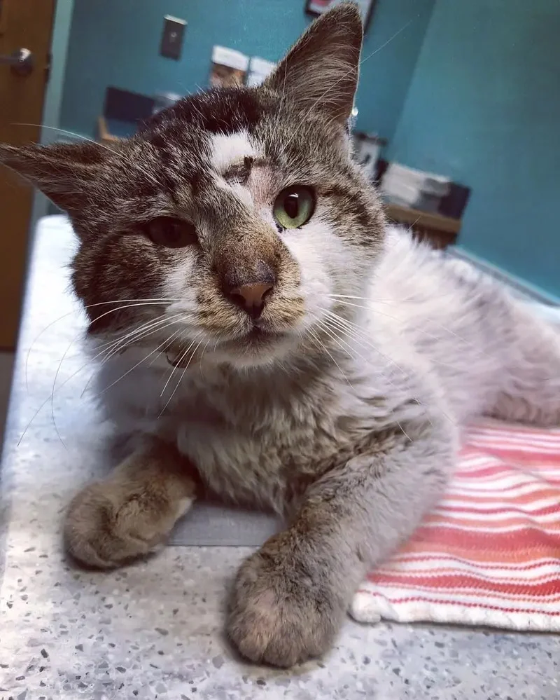 With immediate medical care underway, a remarkable aspect of Otto’s recovery was his unwavering spirit. Despite his injuries, he kept purring and responded joyfully to affection.