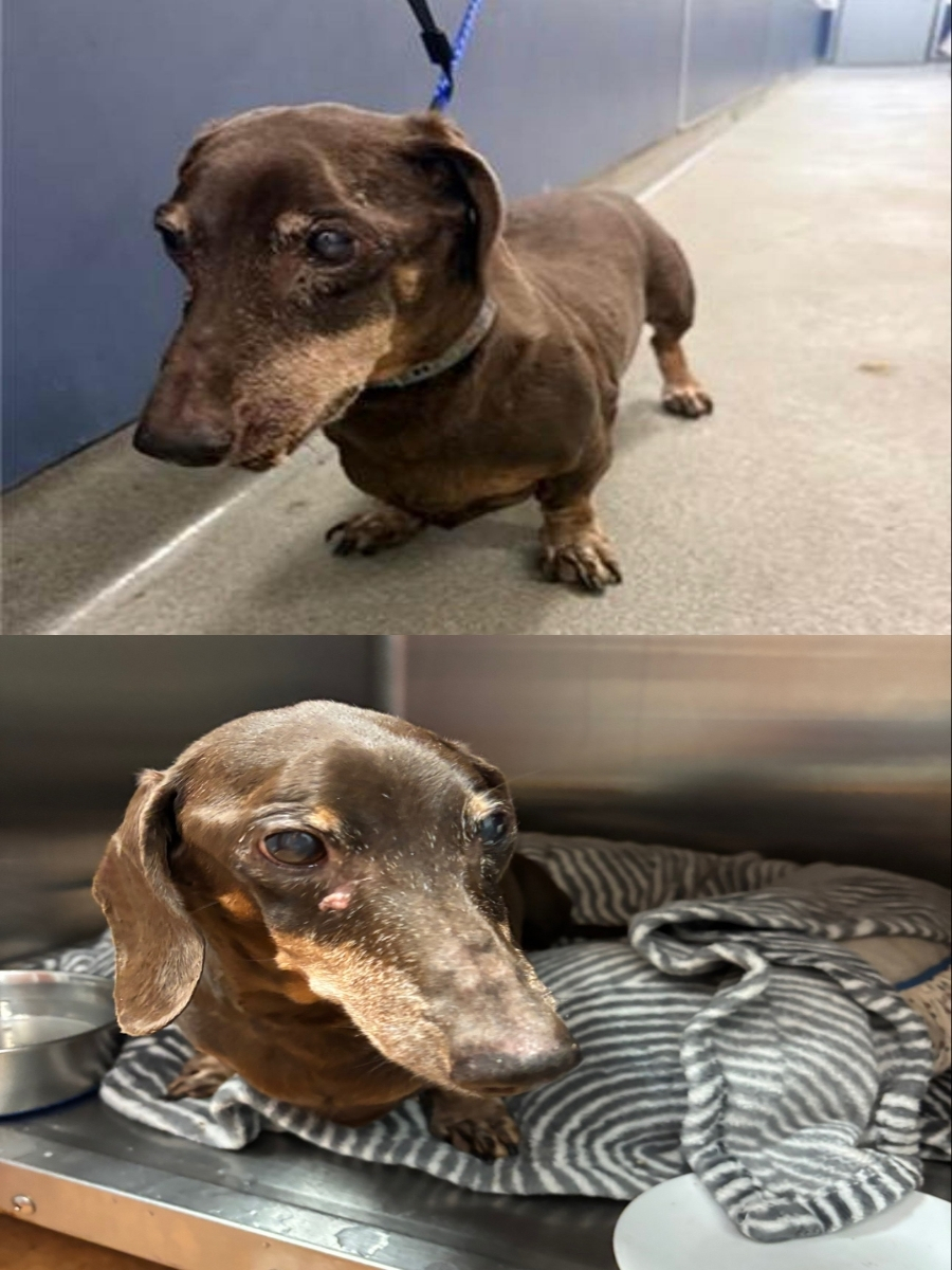 The small puppy, looking helpless with sorrowful eyes, was suffering from a severe infestation of parasitic larvae.