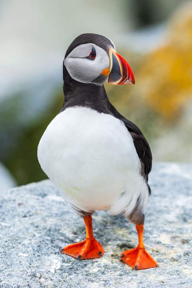 One of the puffin’s most notable characteristics is its brightly colored beak, which displays vivid shades of orange, yellow, and blue during the breeding season. This colorful beak helps in courting and also aids in gathering fish for their young.