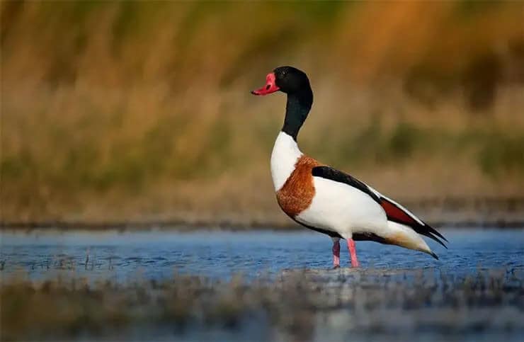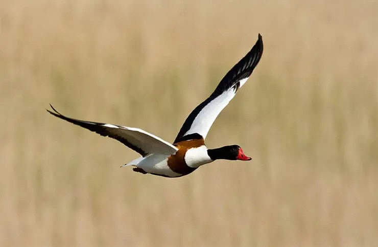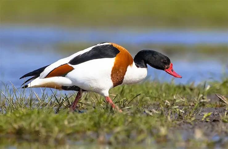 The common shelduck, often found along the coasts and brackish lagoons of northern Europe and parts of Asia has an unusual habit of nesting in burrows originally dug by other animals, including foxes, badgers, and rabbits.