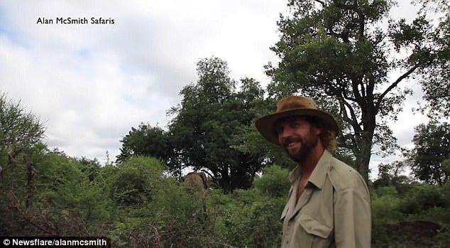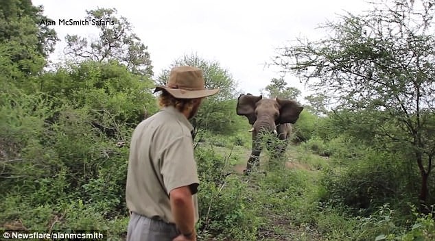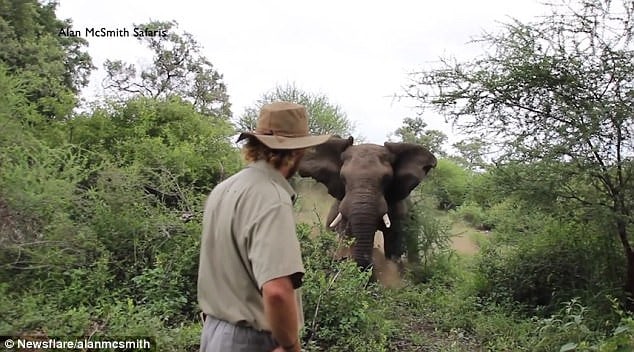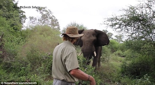 Trail guide Alan McSmith manages to stop an elephant in its tracks by using ‘calming energy’
